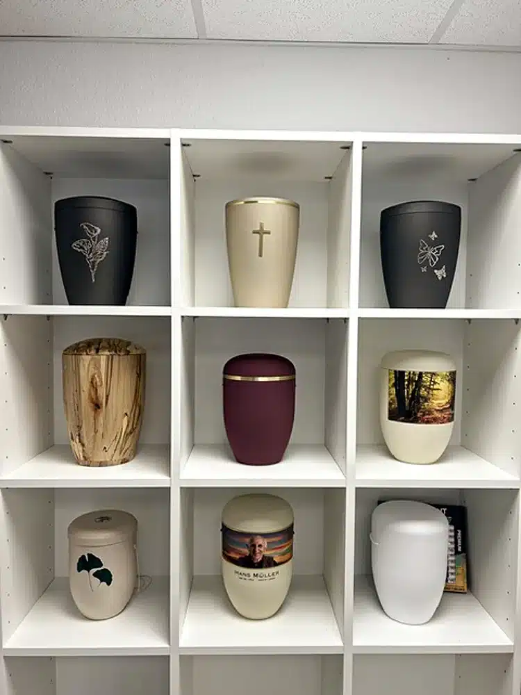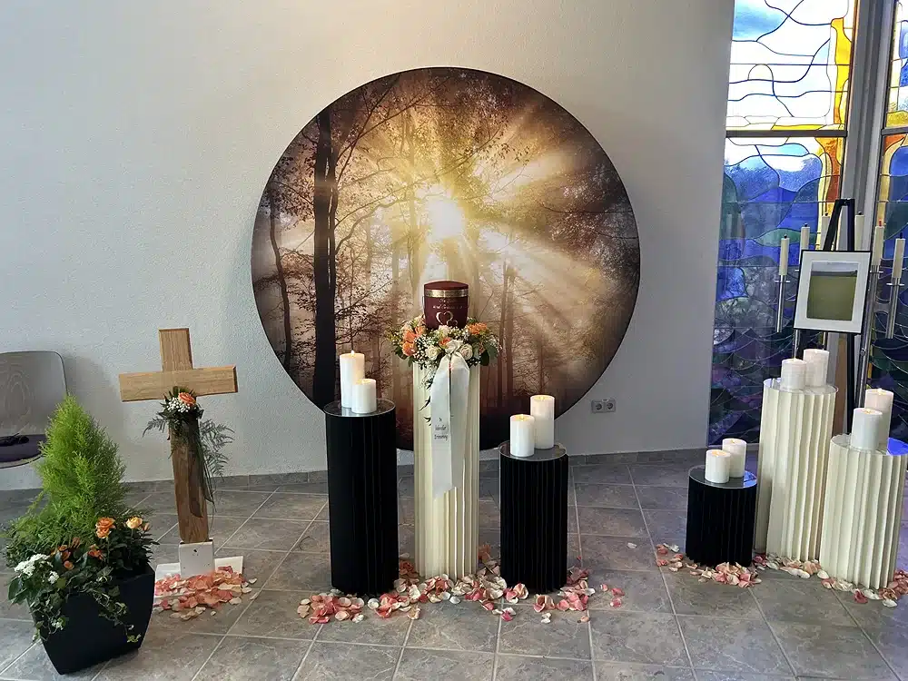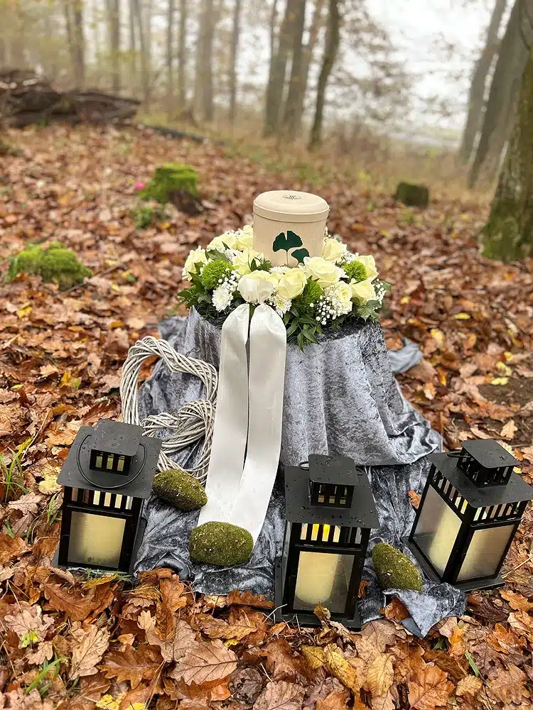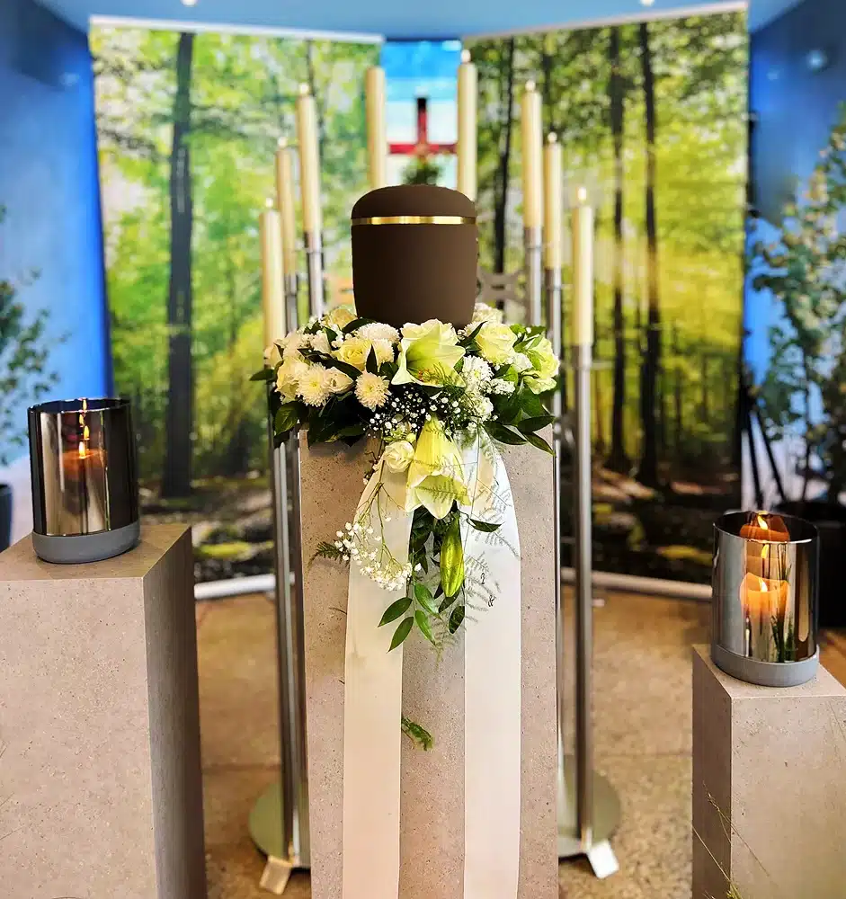 Neben einer individuell gestalteten Trauerfeier stehen wir Ihnen auch beim Trauerdruck, bei der Wahl der Bestattungsart und der Grabstätte unterstützend zur Seite. Denn wir glauben: Die kleinen Details machen das große Ganze aus – und sollten zur Lebensgeschichte des Verstorbenen passen.