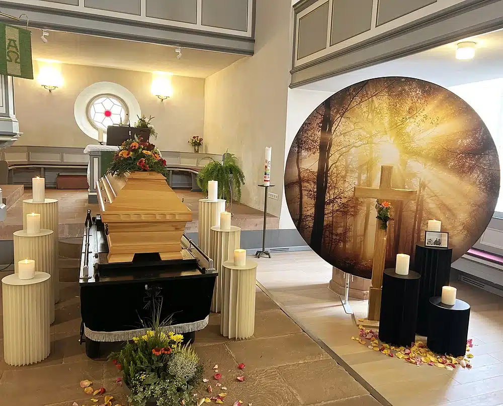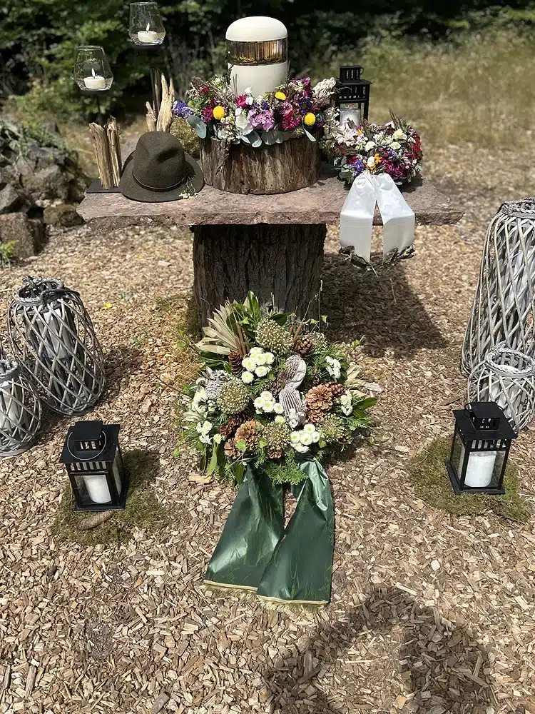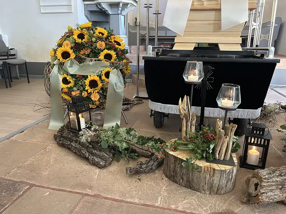 Bereitstellung von Dekorationsartikeln für die Beisetzung