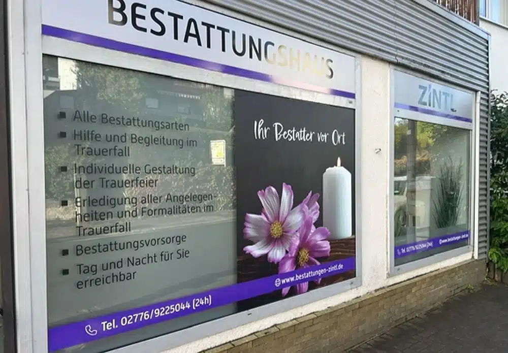 Diese Entwicklung führte 1982 dazu, das die Schreinerei Zintl durch die Gründung eines Bestattungsunternehmens erweitert wurde, das mittlerweile durch die Söhne Dennis und Stephen Zintl fortgeführt wird.